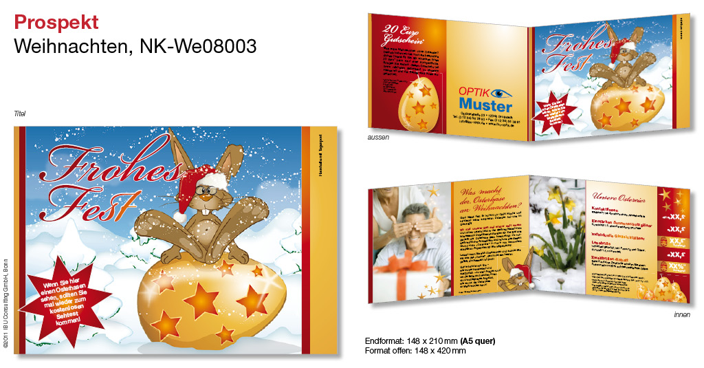 Ein Osterhase zu Weihnachten?! Dieser Prospekt fällt auf und vermittelt auf humorvolle Weise, wie wichtig regelmäßige Sehtests sind.