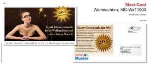 Mit dieser Maxi-Card wĂĽnschen Sie Ihren jungen, modebewussten Kundinnen ein frohes Fest und vermitteln glaubwĂĽrdig, dass Sie der Optiker sind, der zu ihrem LebensgefĂĽhl passt.