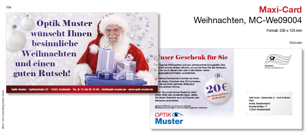 Diese Maxi-Card vermittelt 100% Weihnachtsstimmung und präsentiert Ihre Leistungen und Angebote zum Fest voller Energie und Farbe.