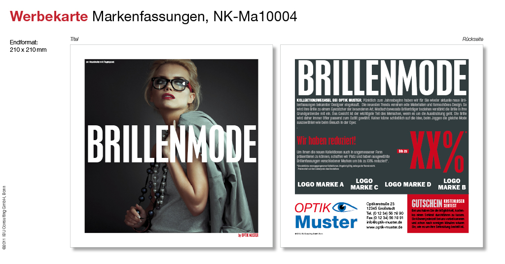 Angebote zu passenden Plakaten, Anzeigen oder ähnlichem erhalten Sie mit dem ersten Korrekturabzug Ihres Prospektes. |