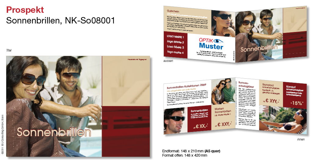 Mit diesem Prospekt in edlem Weinrot und zartem Rosa erreichen Sie Ihre anspruchsvollen Kunden, die Wert auf Markenqualität und maximalen Sehkomfort legen.