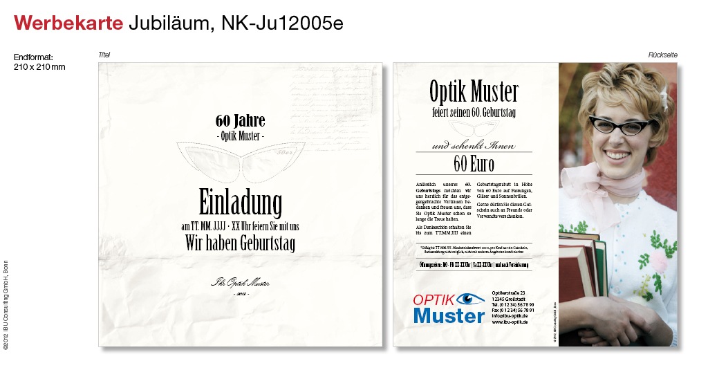Mit dem aufgedruckten Rabattgutschein auf Fassungen, Gläser und Sonnenbrillen lassen Sie Ihre Kunden auch die Anfänge des „Wirtschaftswunders“ noch einmal hautnah miterleben!