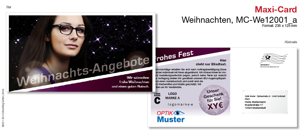 Weihnachtlicher Schick für Ihre Werbung! Diese stilvolle Maxi-Card hat etwas von dem Glanz und dem Funkeln der festlichen Tage eingefangen, sodass Sie Ihre Angebote und Leistungen im besten Licht präsentieren können.