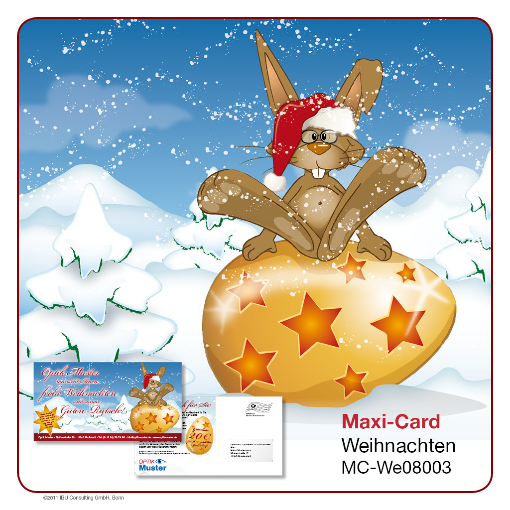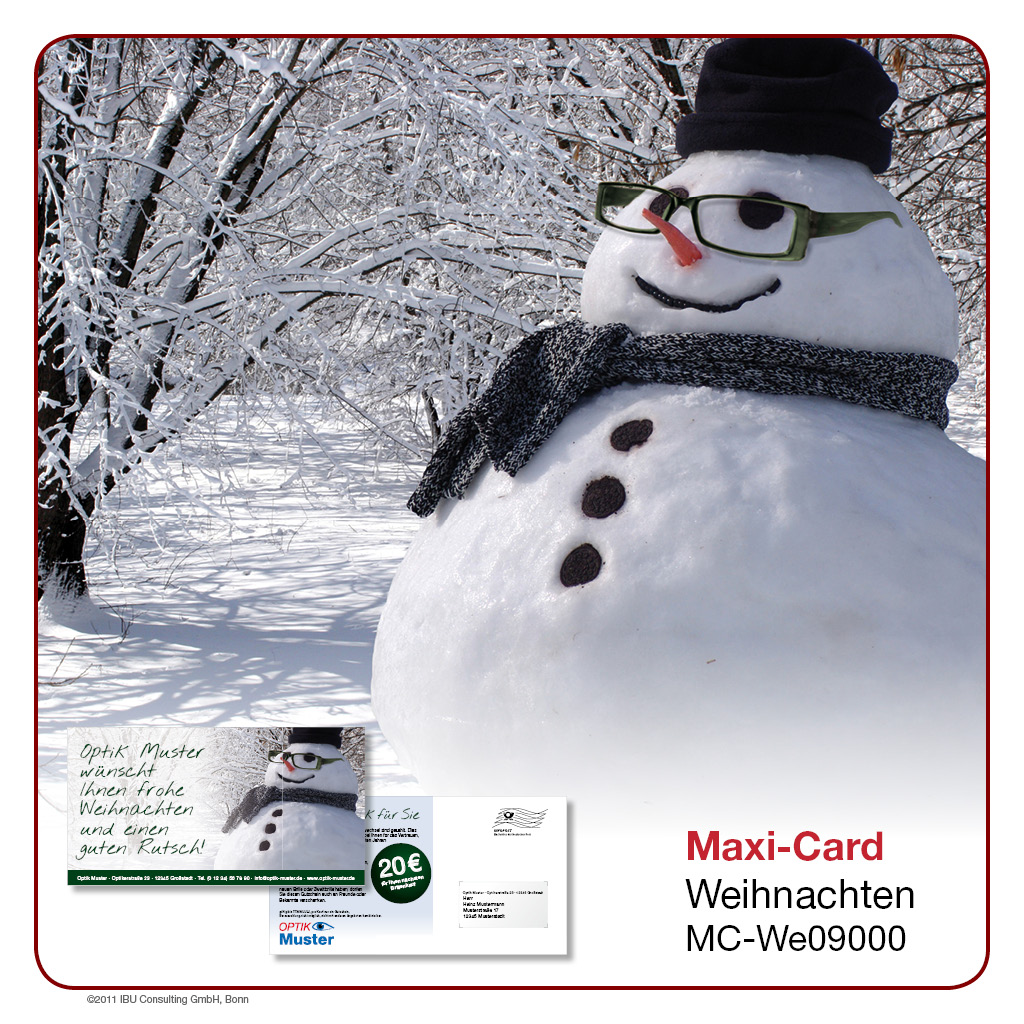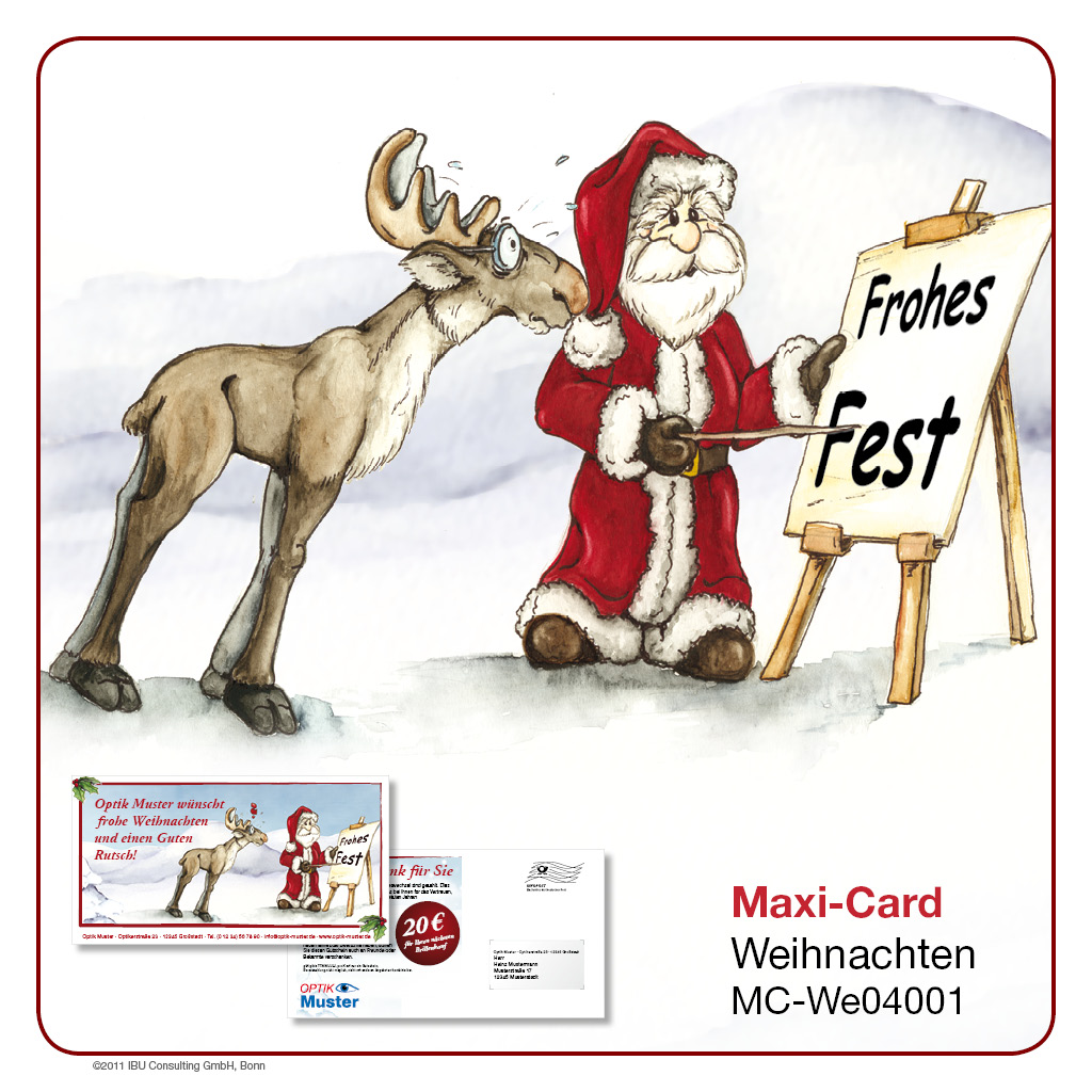 Hier können Sie sich die verschiedenen Layouts für unser Maxi-Cards Weihnachten anschauen. Sie erhalten unsere Maxi-Cards inkl. Lettershopleistungen und Einlieferung bei der Deutschen Post. Die Portokosten werden separat nach den Einlieferungslisten der Deutschen Post berechnet. Nach Eingang der Bestellung werden wir uns telefonisch mit Ihnen in Verbindung setzen, um den Ablauf, Logo, Datum der Postauflieferung u.ä. zu klären.
