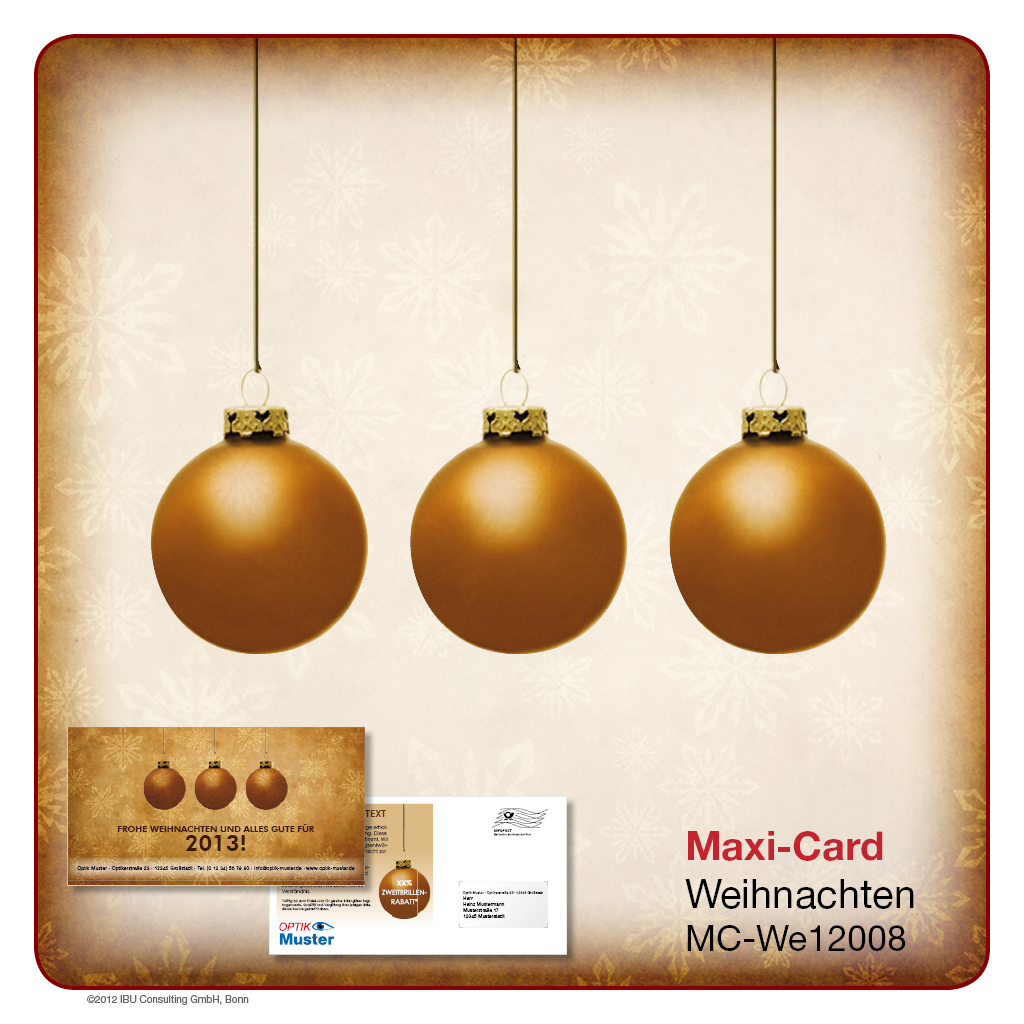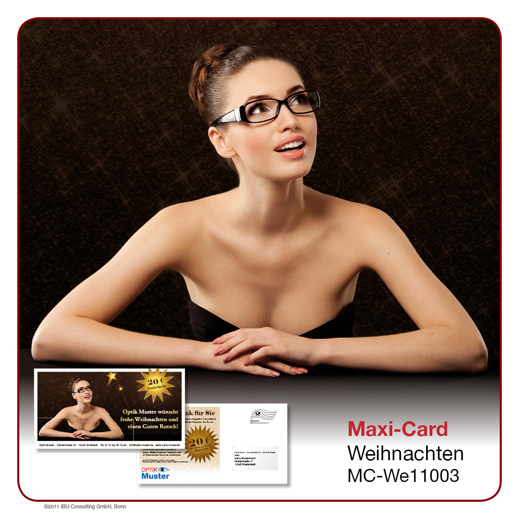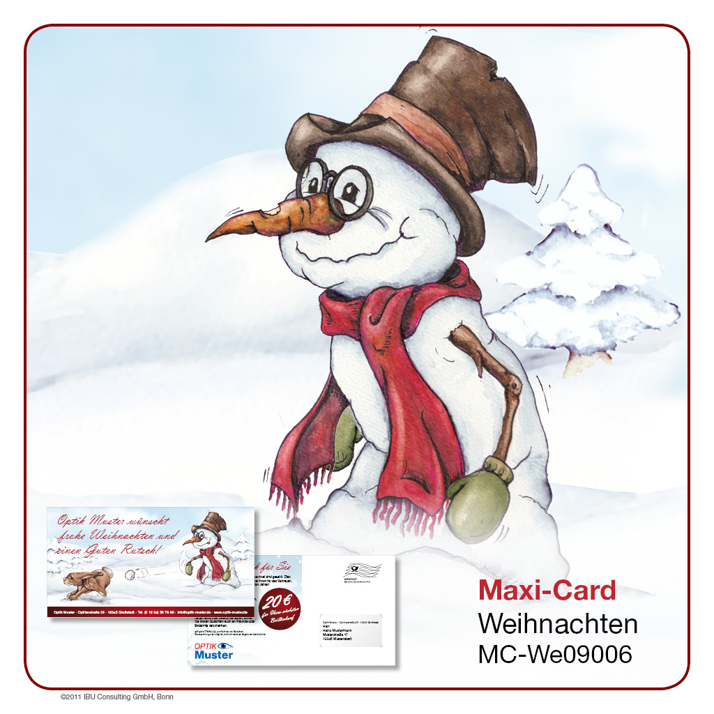 Hier können Sie sich die verschiedenen Layouts für unser Maxi-Cards Weihnachten anschauen. Sie erhalten unsere Maxi-Cards inkl. Lettershopleistungen und Einlieferung bei der Deutschen Post. Die Portokosten werden separat nach den Einlieferungslisten der Deutschen Post berechnet. Nach Eingang der Bestellung werden wir uns telefonisch mit Ihnen in Verbindung setzen, um den Ablauf, Logo, Datum der Postauflieferung u.ä. zu klären.