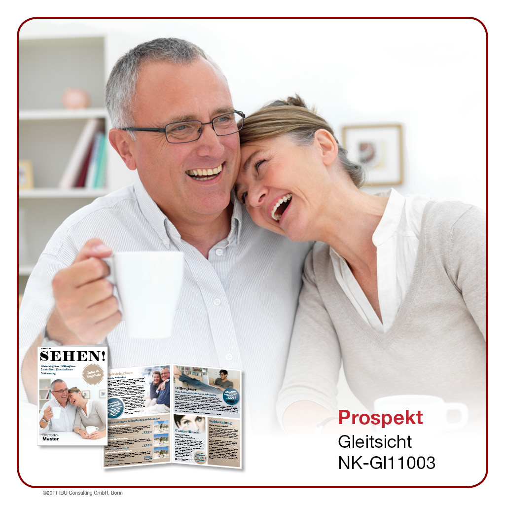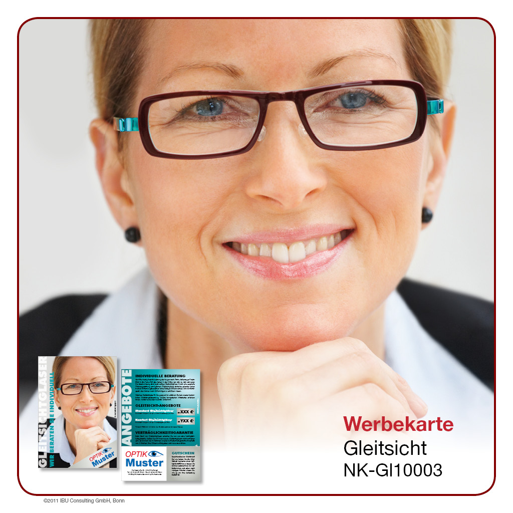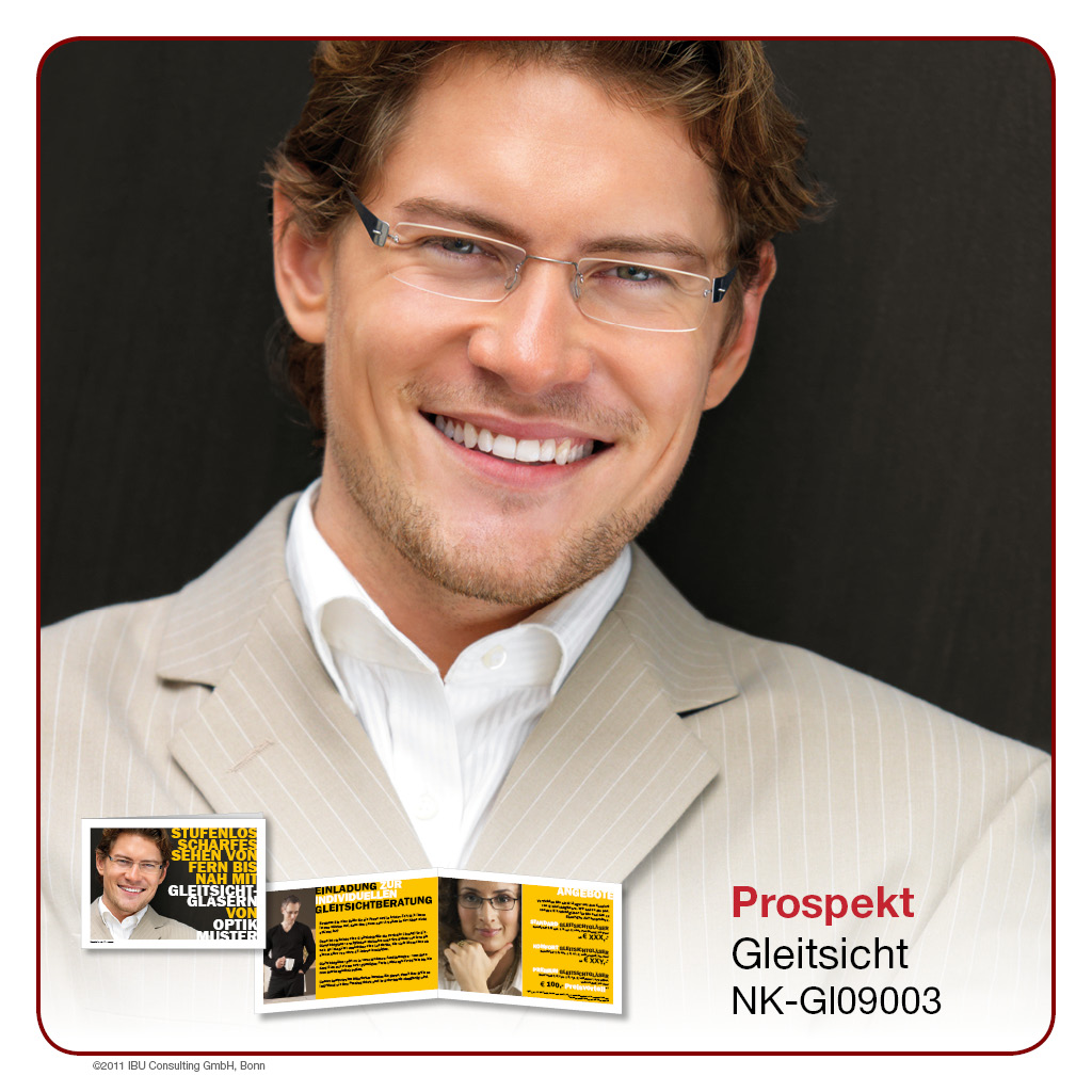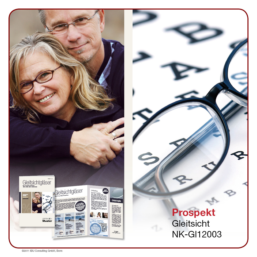 Hier bieten wir Ihnen professionell gestaltete Werbeprospekte und -karten rund um das Thema „Gleitsicht“. Wählen Sie aus einer Palette an unterschiedlichen Designs und Formaten und entscheiden Sie selbst, in welchem Umfang Sie ĂĽber Sortiment, Leistungen und Rabattaktionen in Ihrem Geschäft berichten möchten. Lassen Sie sich von der Bandbreite unseres Angebotes ĂĽberraschen – Sie werden sehen, es gibt es viele Wege, Ihre Kunden auf dem Laufenden zu halten!
