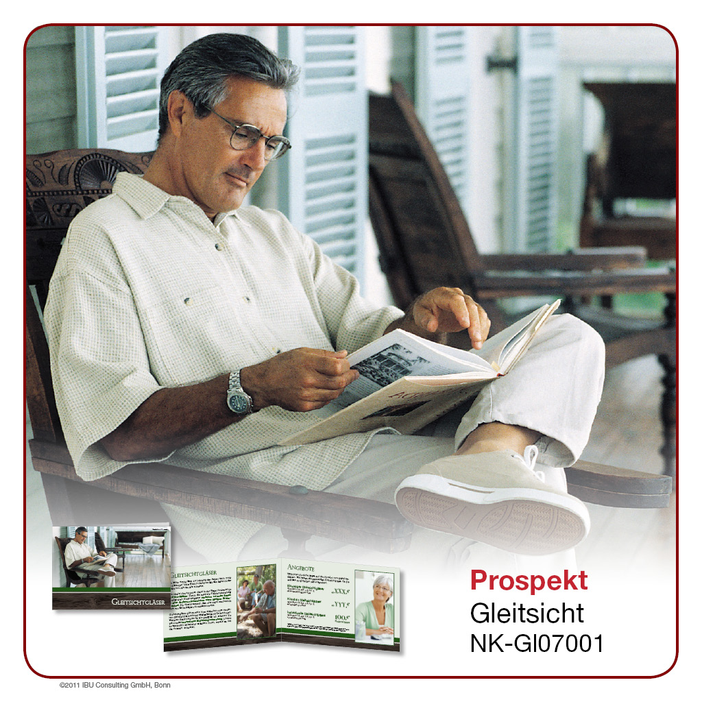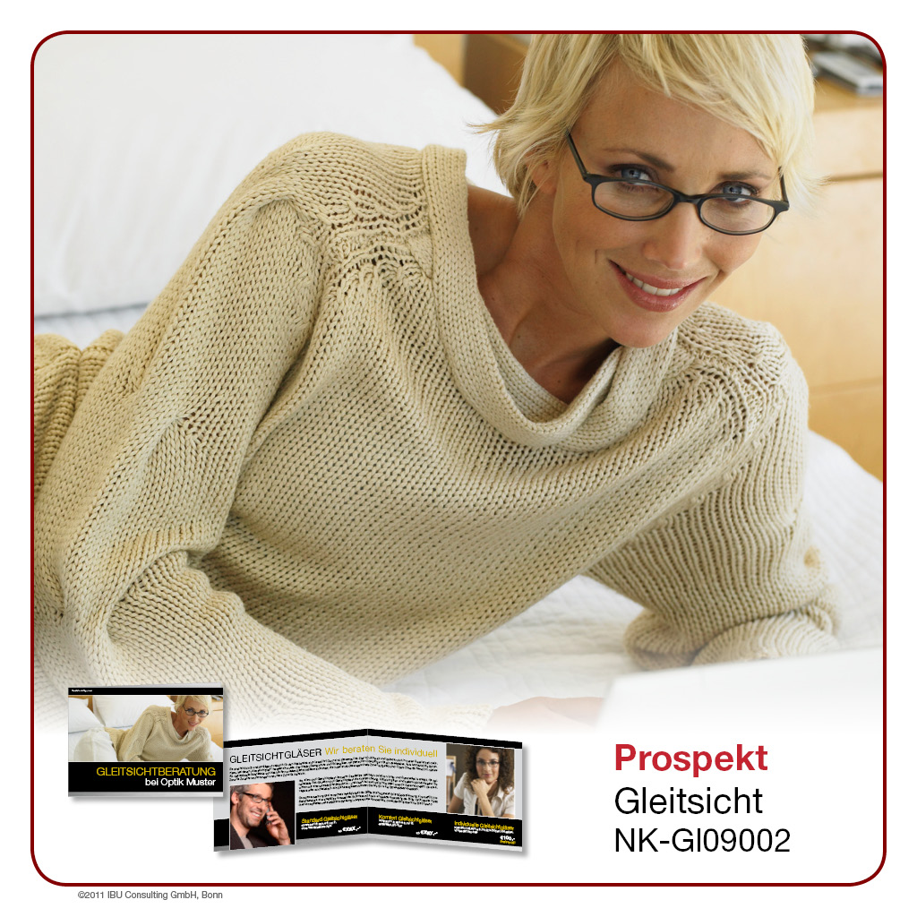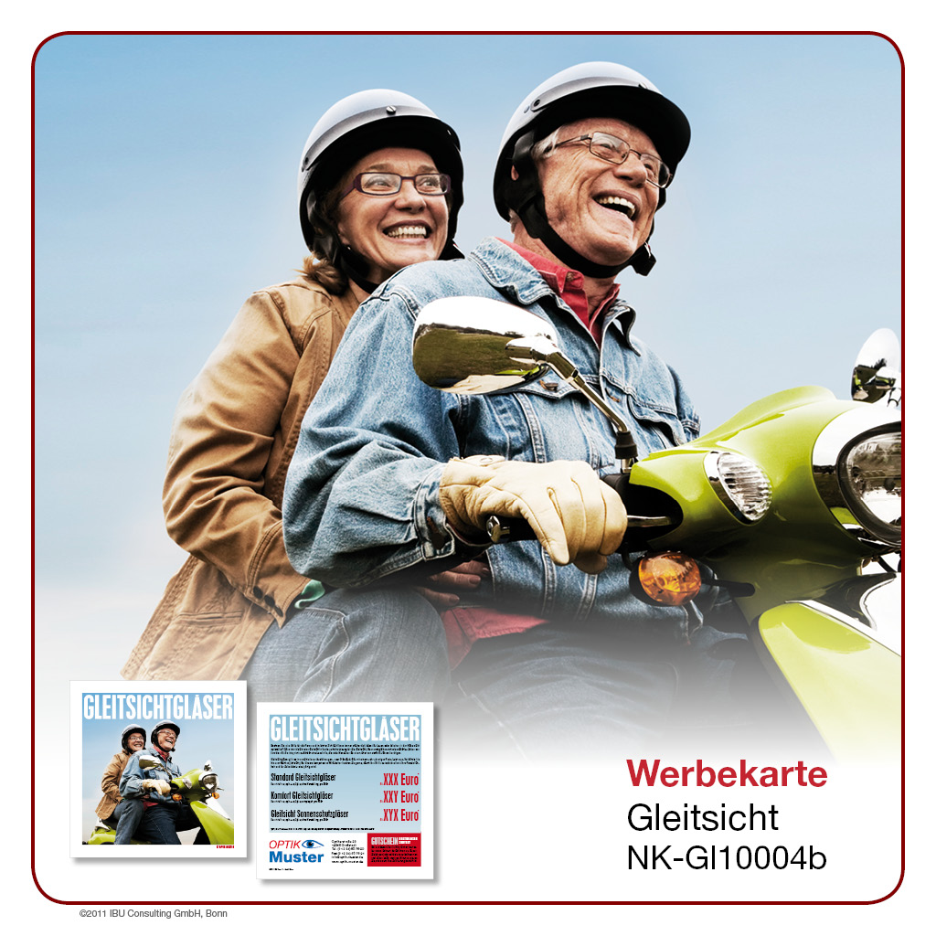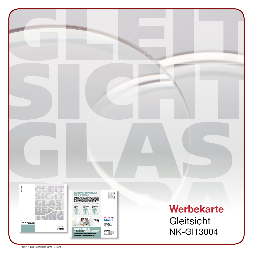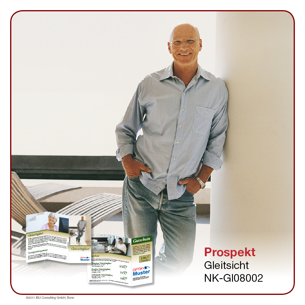Hier bieten wir Ihnen professionell gestaltete Werbeprospekte und -karten rund um das Thema „Gleitsicht“. Wählen Sie aus einer Palette an unterschiedlichen Designs und Formaten und entscheiden Sie selbst, in welchem Umfang Sie ĂĽber Sortiment, Leistungen und Rabattaktionen in Ihrem Geschäft berichten möchten. Lassen Sie sich von der Bandbreite unseres Angebotes ĂĽberraschen – Sie werden sehen, es gibt es viele Wege, Ihre Kunden auf dem Laufenden zu halten!