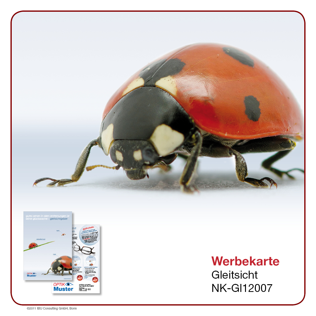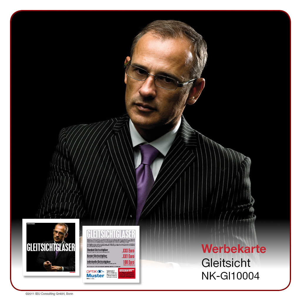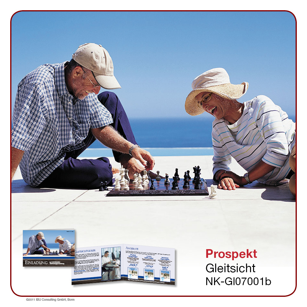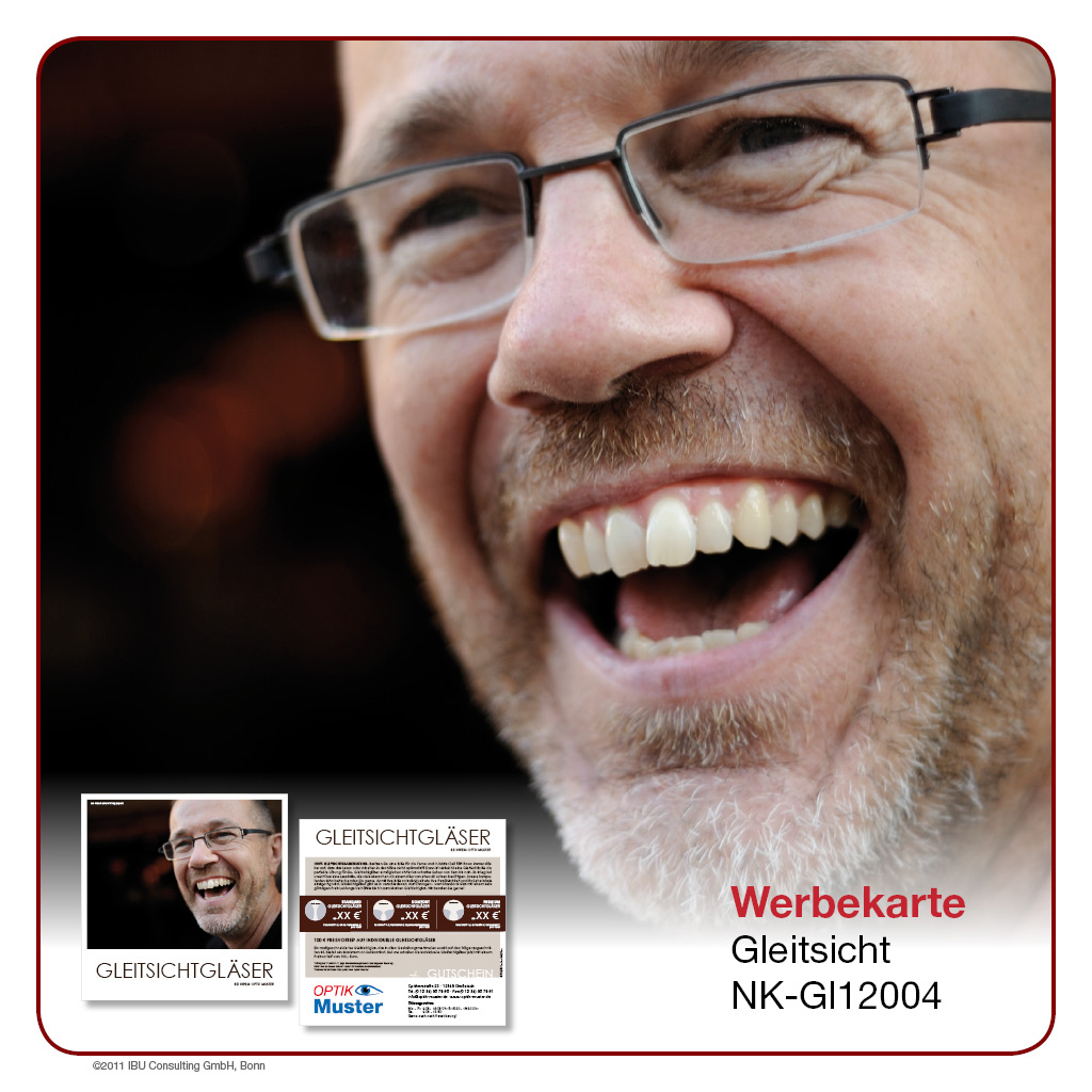 Hier bieten wir Ihnen professionell gestaltete Werbeprospekte und -karten rund um das Thema „Gleitsicht“. Wählen Sie aus einer Palette an unterschiedlichen Designs und Formaten und entscheiden Sie selbst, in welchem Umfang Sie ĂĽber Sortiment, Leistungen und Rabattaktionen in Ihrem Geschäft berichten möchten. Lassen Sie sich von der Bandbreite unseres Angebotes ĂĽberraschen – Sie werden sehen, es gibt es viele Wege, Ihre Kunden auf dem Laufenden zu halten!
